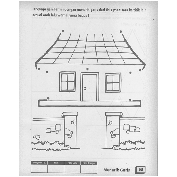 Menarik Garis. Buku ini melatih anak anda bagaimana cara membuat gambar objek mengikuti garis yang terbentuk dari titik atau garis putus-putus. Latihan menggambar ini dapat meningkatkan kreativitas maupun keterampilan motorik. Serial buku ini dapat mengasah kreativitas sekaligus mengenalkan nama-nama objek benda dan lingkungan.