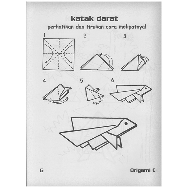Buku seni melipat kertas Origami, merupakan buku permainan dan aktivitas yang diperuntukkan bagi anak-anak. Buku ini berisi langkah-langkah mudah membuat origami untuk anak TK dan PAUD. Buku ini juga diselingi dengan aktivitas menempel hasil origami yang dibuat anak, lalu mewarnai. Sangat lengkap dan menyenangkan ya.